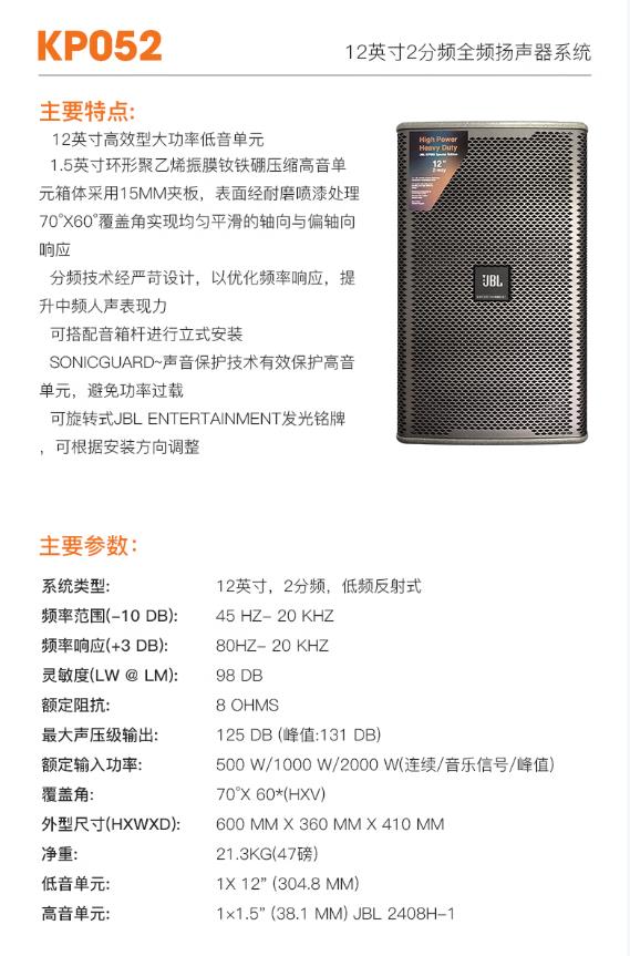 JBL家庭KTV音响 KP051 KP052 KP055专YE音箱 K歌乐队舞台演出直播婚庆音箱 KP050系列